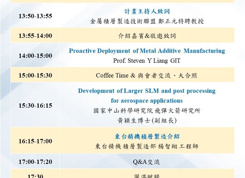 金屬積層製造技術聯盟將於2023/05/03在台灣科技大學舉辦『金屬積層製造技術發展與應用國際...