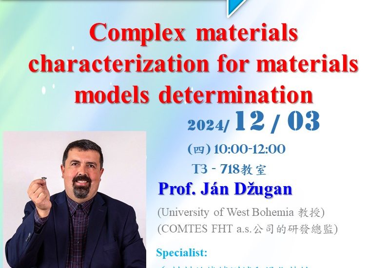 講者:Prof. Jan Džugan (捷克共和國 西波希米亞大學教授) 時間:112年7...