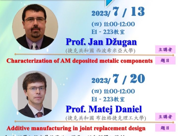 講者:Prof. Jan Džugan (捷克共和國 西波希米亞大學教授) 時間:112年7...