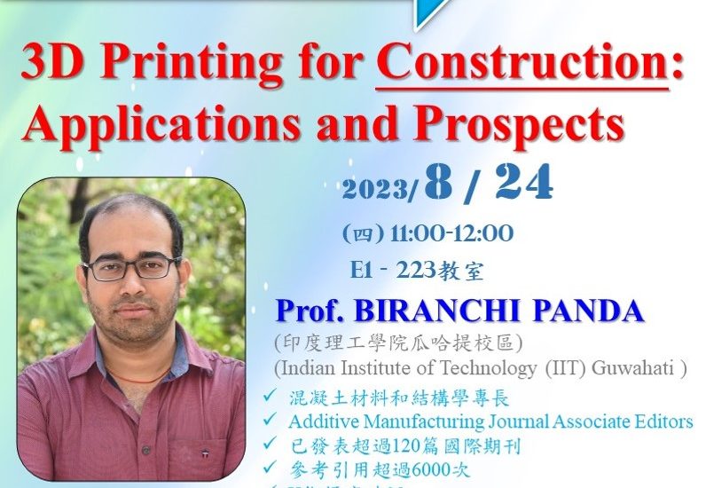 講者:Prof. Biranchi Panda (印度理工學院 瓜哈提校區 教授) 時間:11...